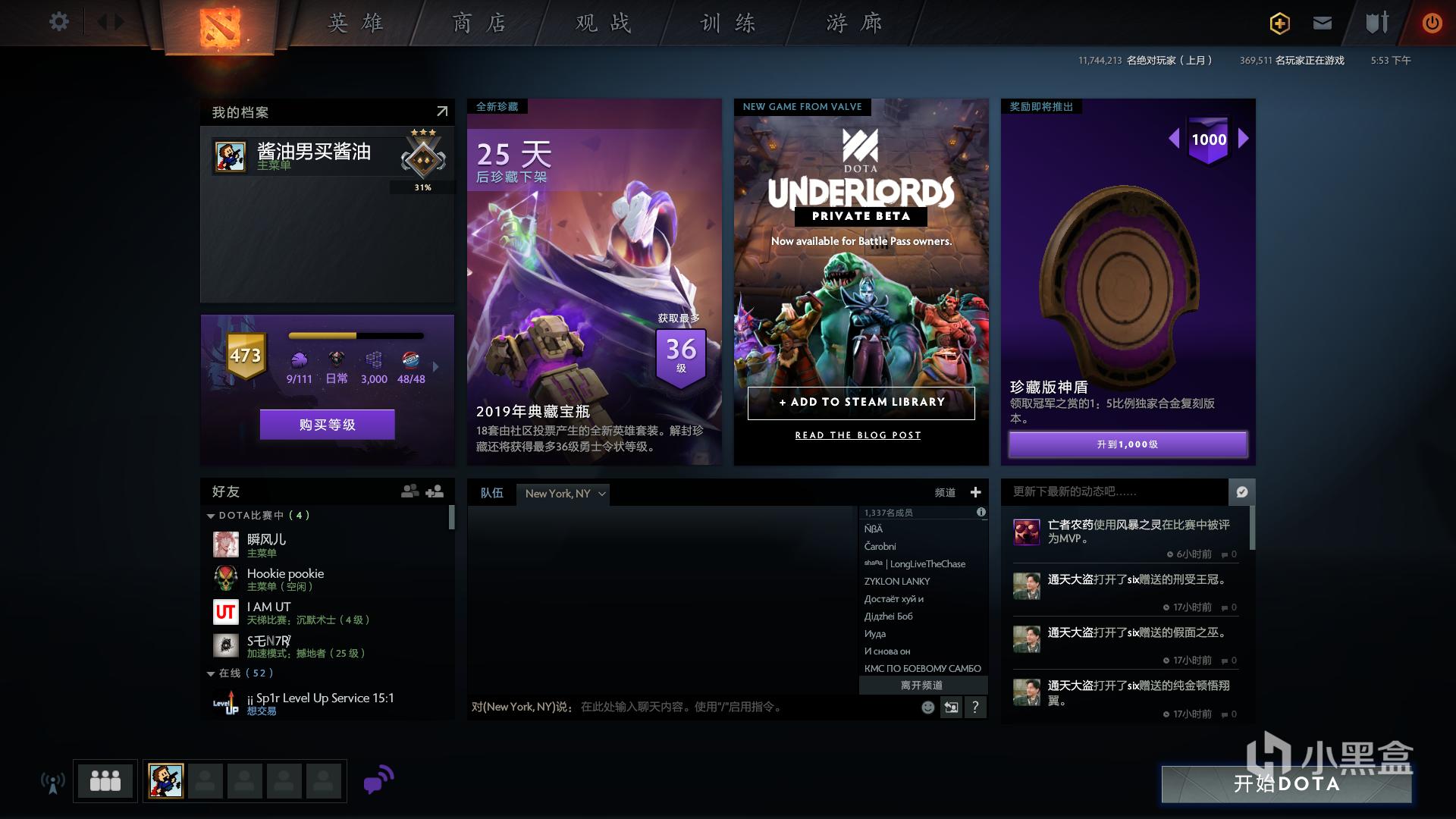 在右侧的主宣传图就是本次的V社自走棋《DOTA Underlords》(也就是新珍藏与1000级本子奖励中间的这个)