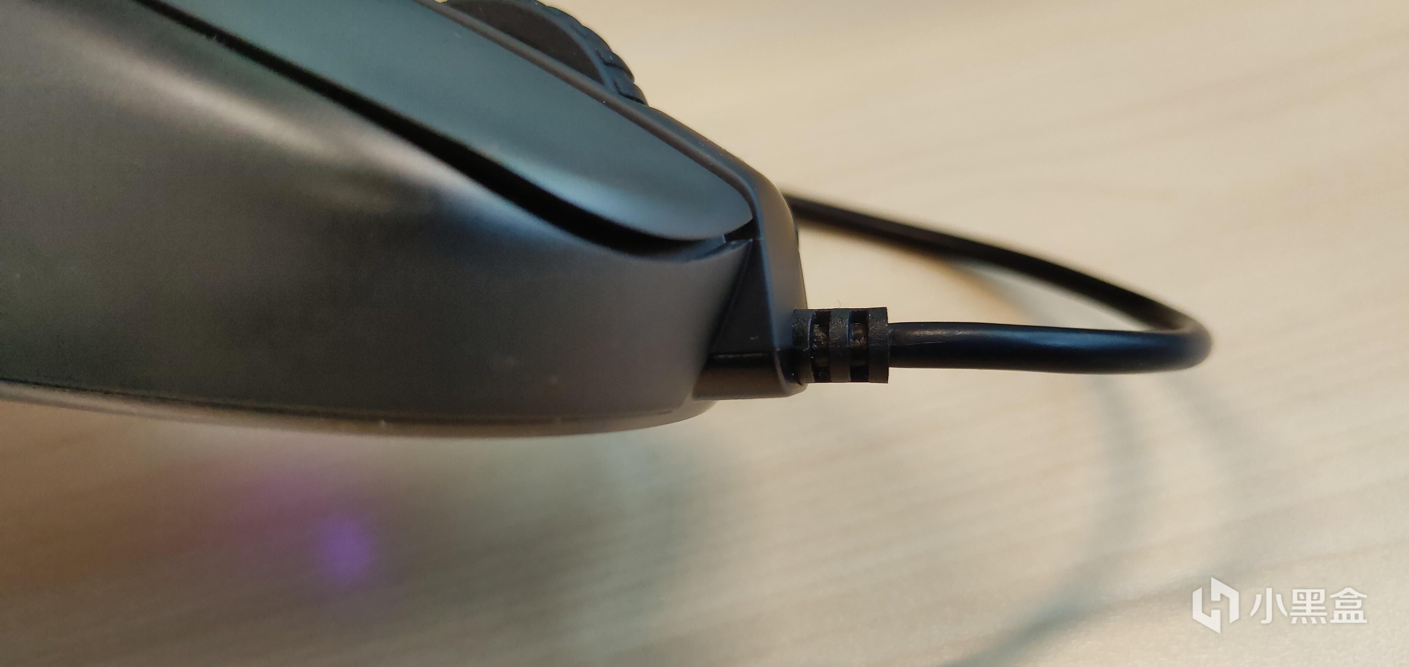 前方的出线头做了拉高的设计,需要搭配鼠标线夹同时使用,避免拖曳线材在鼠标垫上影响操作,勉强达到了近乎无线鼠标的感受,不过在我看来这是有线鼠标最后的倔强了。