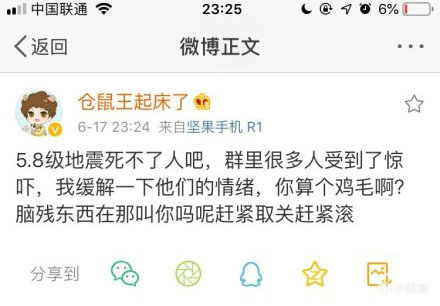 根据中国地震台网自动测定,6月17日22时55分在四川宜宾市长宁县附近发生左右地震。后续相关报道显示,目前地震已经造成了大量人员伤亡和财产损失。不过就在全国人民走在为宜宾灾区担忧和祈福之际,虎牙绝地求生主播仓鼠王却在微博和QQ群这样的公开场合肆意调侃、攻击灾区群众。这种伤害民族团结、哗众取宠的恶劣行径实在令人愤怒!