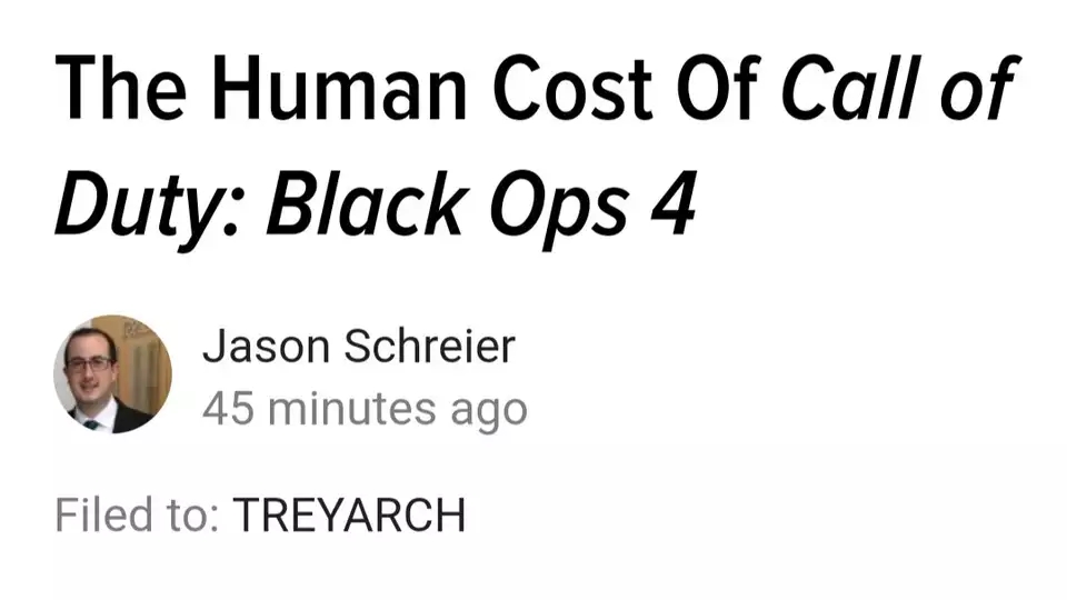 近日,游戏媒体Kotaku上的一篇文章指出,《使命召唤:黑色行动》系列游戏制作组——Treyarch,内部员工遭遇到不公平待遇。