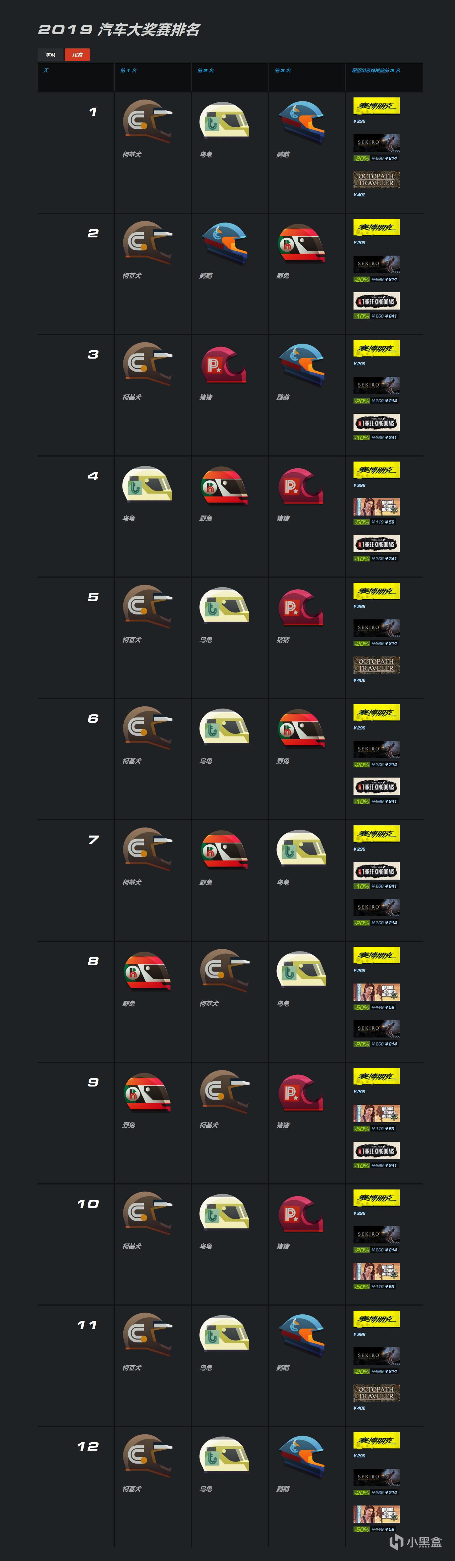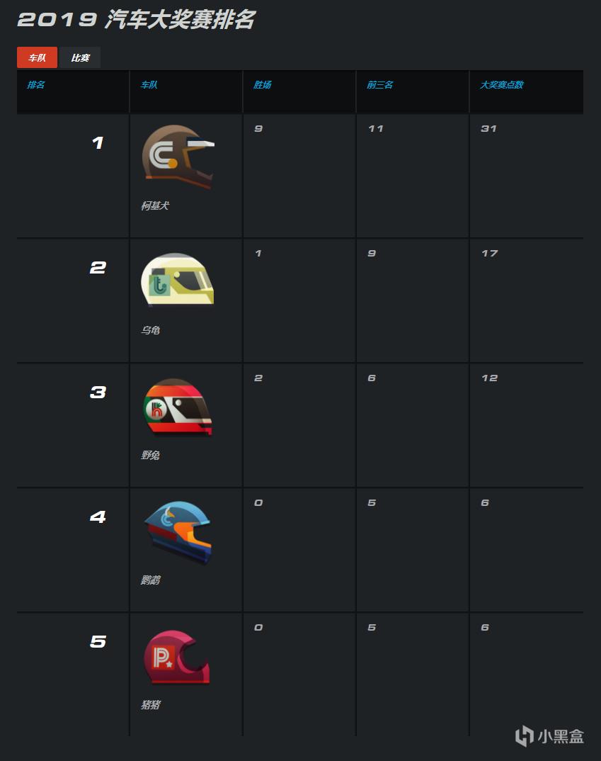 随着各个车队的赛车驶入维修站,2019年Steam夏促赛车活动宣告结束。在总排名中柯基第一,乌龟第二,兔兔第三。