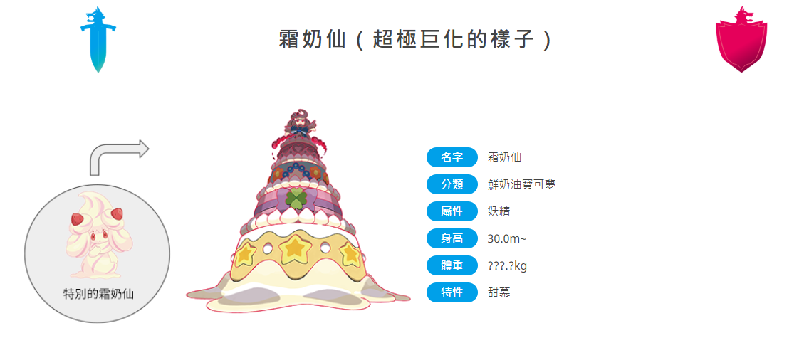 霜奶仙(超极巨化后)耐冲击的奶油身体全身满溢而出的奶油越是受到强大的冲击,就会变得越坚固,所以对于物理攻击有着极强的防御能力。