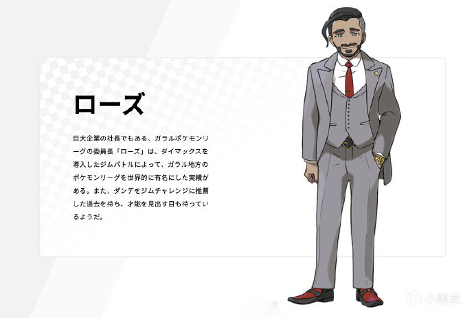 洛兹:一人身兼大企业总裁与伽勒尔宝可梦联盟会长二职。将极巨化成功导入道馆对战之中,使伽勒尔地区的宝可梦联盟举世闻名。过去将丹帝推荐为道馆挑战者的就是洛兹,说明他还具有一双辨识英才的慧眼。