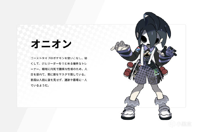 欧尼奥:能将幽灵属性宝可梦运用自如,小小年纪就担任道馆馆主,是名非常优秀的训练家。性格极其内向怯懦,由于惧怕世人眼目,一直用面具将自己的脸掩盖起来。平时不现身于人前,听说常常一个人待在遗迹或墓地。