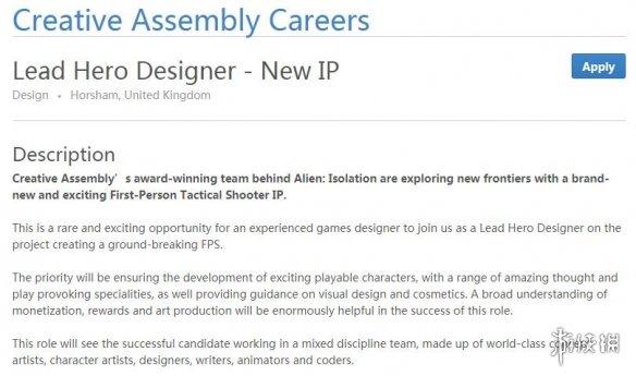 目前CA正在招募一名“首席英雄设计师”,主要负责一部“突破性的FPS”,首要职责是设计出令人激动的可玩角色,要有优秀的设计思路和有深度的技能特性,同时还要指导设计他们的外形特征。此外,应聘者还需要对微交易、奖励品和艺术表现有所了解,看来游戏中可能会有角色的装饰性内购。