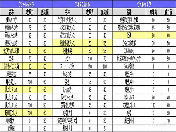 三古龙的不同招式威力