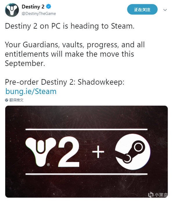 《命运2》PC版将于9月18日从战网上下架并登录Steam平台。官方表示玩家的所有数据都将转移至Steam版本中,玩家不需要从头开始花数百小时肝了。