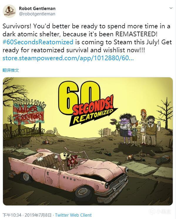Robot Gentleman官方推特在之后也表示等到《60秒!》重制版上架后,拥有原版的玩家将会免费获得重制版的内容。