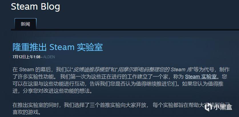 7月12日凌晨,Steam官方发布了一份公告,宣布在其平台上推出了一个名为“Steam实验室”的全新功能。V社在公告中表示,随着这一实验室的推出,Steam平台上将增加许多全新的功能,玩家可以通过“Steam实验室”来体验这些功能,并向V社官方进行意见反馈。