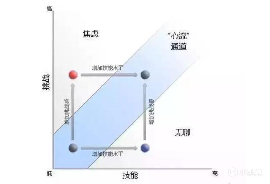 那么心流和新手玩家有什么关联呢?事实上,制造心流体验是游戏设计者的重要任务,而游戏内形成心流的重要因素之一就是设定“个人最优化障碍”。所谓个人最优化障碍,就是保证游戏难度是玩家水平所在范围之内,最好是玩家通过不断努力能到达的游戏难度,这样玩家才有动力。