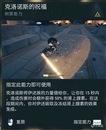 克洛诺斯的祝福是猛毒攻击的进化版,主要效果是免受伊述士兵冻结肾上腺素招式的影响,看起来很有用,不过挨打还是会产生硬直,所以只能作为辅助能力使用。