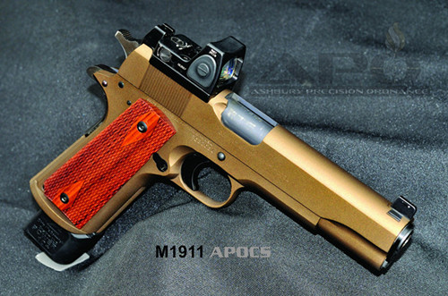 而手枪上的红点瞄准镜就不一样了,这就是Trijicon RMR微型瞄准镜。这种红点瞄准镜尺寸极小,采用外部光源照明,通常被装在一些高倍瞄准镜上或是手枪上,用作近距离瞄准射击。当然,RMR瞄准镜也可以和普通瞄准镜一样,直接装在步枪上使用,但实用性就不怎么高了。