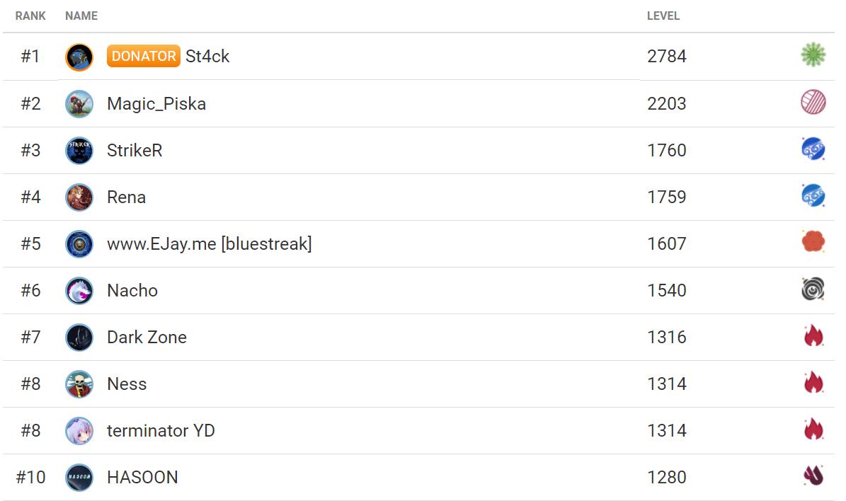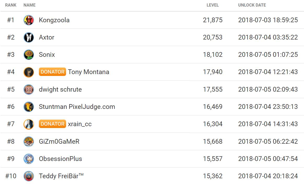 等级排行榜前几位都是热爱游戏的狂热玩家,有一掷千金的迪拜土豪,也有萌萌哒的俄罗斯大兄弟。