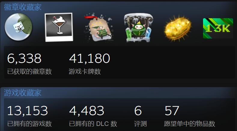 根据Steam Card Exchange数据,目前steam有徽章的游戏有8465个。1760级就拥有6338个徽章,可想而知后期等级提升多么困难。