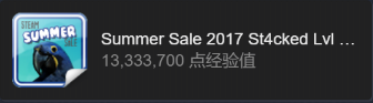 再之后便是17年的steam夏季促销。这位神壕的夏促徽章是13333700经验,也就是133337套卡牌,按市场低价3元一套算的话大概需要40万元左右。而他目前的总等级2874需要的最少卡牌套数是388925。后期合卡可不像前几百级时那么便宜,平均花费也应该在百万以上。