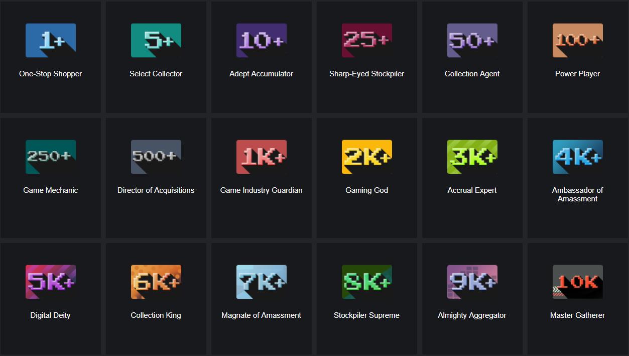 但要达成这样的成就,需要的是大量的游戏资讯,以及更多的花费——游戏必须首发购买。但这些都不是他退出steam+1之路的主要原因。最主要的还是游戏数量的飞速增长,由于绿光、“Steam Direct”等等游戏上架政策,steam游戏数量出现了井喷式的增长。