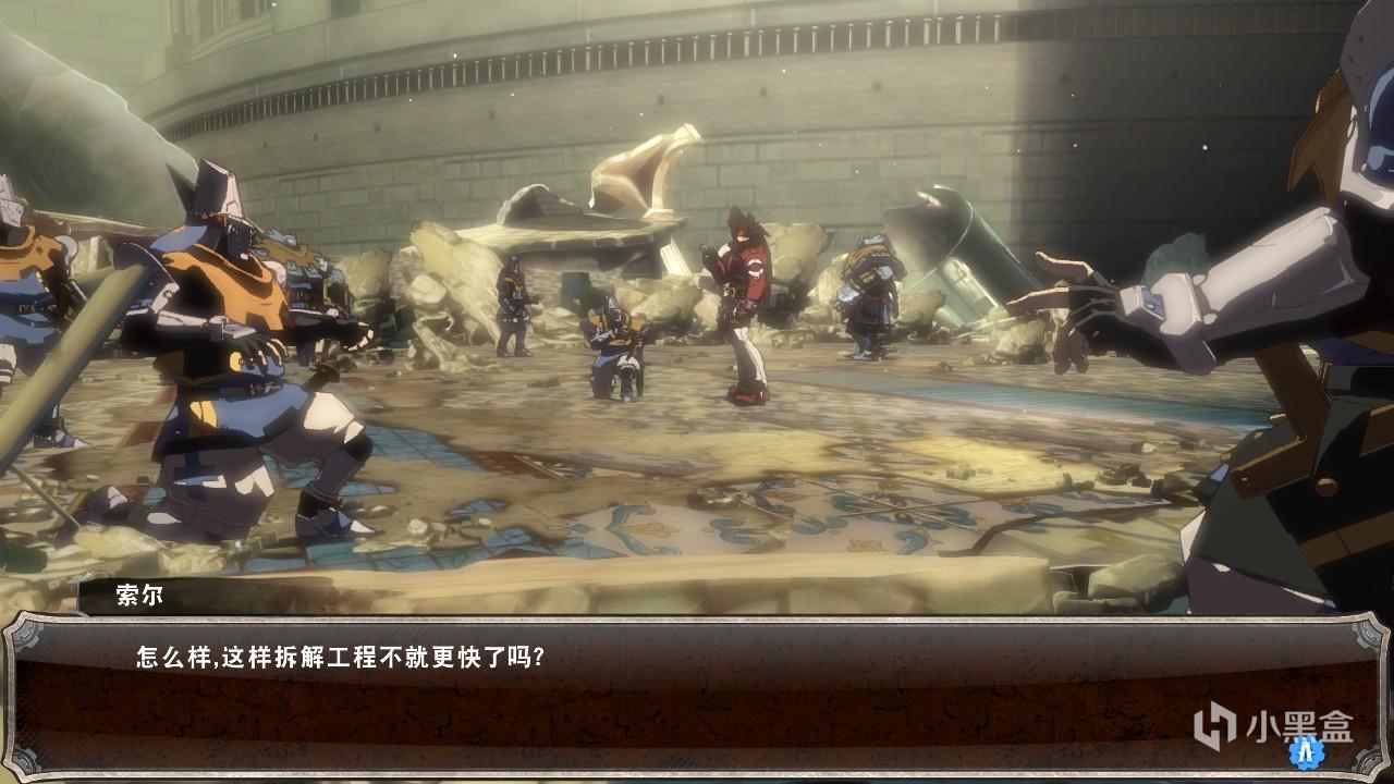 莫非是Arc技术不够?拿出Arc《罪恶装备》系列最新作品《罪恶装备 未知次元 -启示-》稍加对比,情况便一目了然。在《启示》中,不仅仅角色场景建模明显更胜一筹,模型的光影效果也更加自然,剧情中角色动作丰富,且运镜效果也非常考究。可见制作组在制作《异布》时自己真正的实力是明显有所保留的。