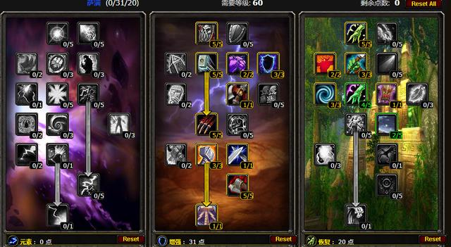 40级之后转元素的加点:31/0/20,先点元素,出到闪电掌握和元素掌握,然后恢复系出图腾掌握、自然指引、潮汐掌握,其他随意(有没有老铁教我怎么上传图片)