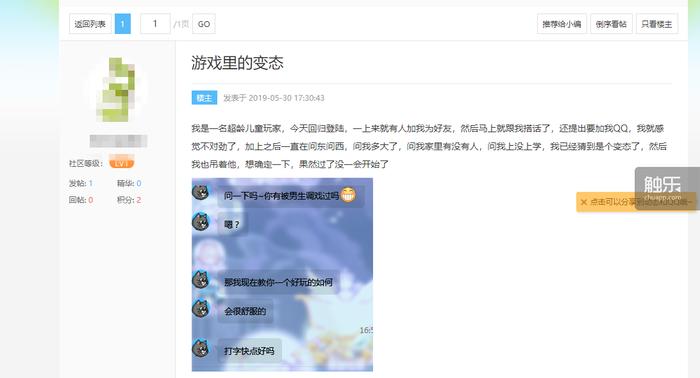在很多儿童游戏的讨论区内,只要输入正确的关键字检索,还能看到举报者们留下的痕迹。有人讲述自己遇到的性骚扰,有人说出了朋友经历的故事,还有人假扮受害者和骚扰者斗智斗勇,并公开了骚扰者的信息。