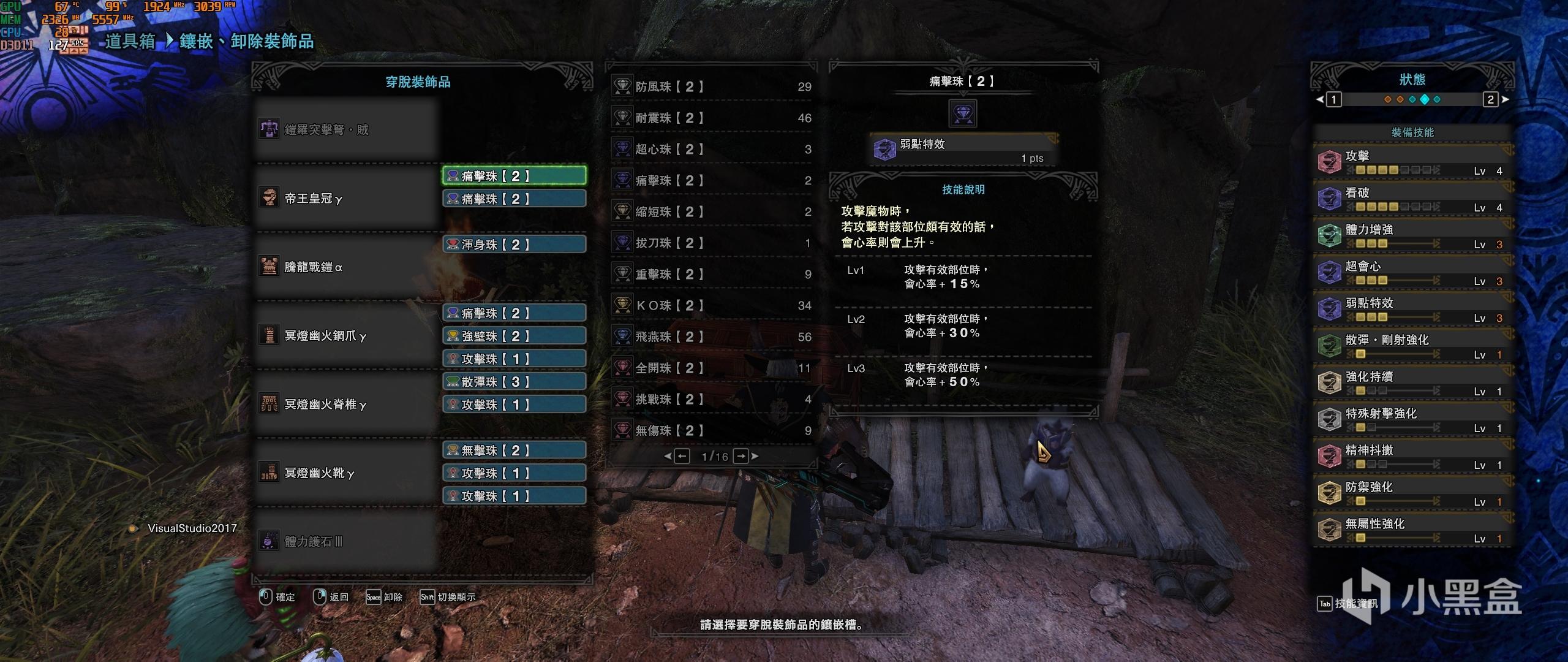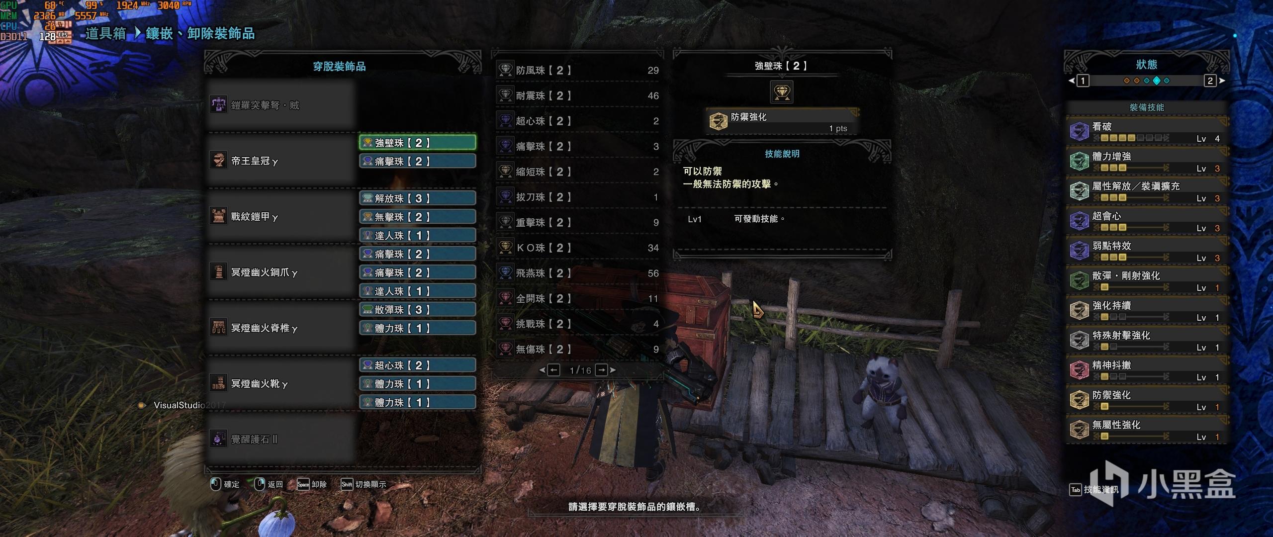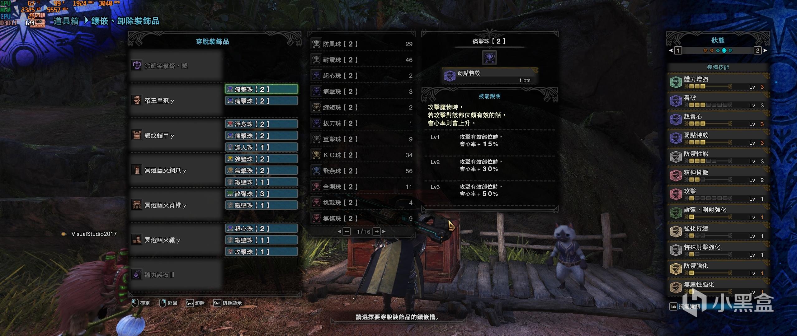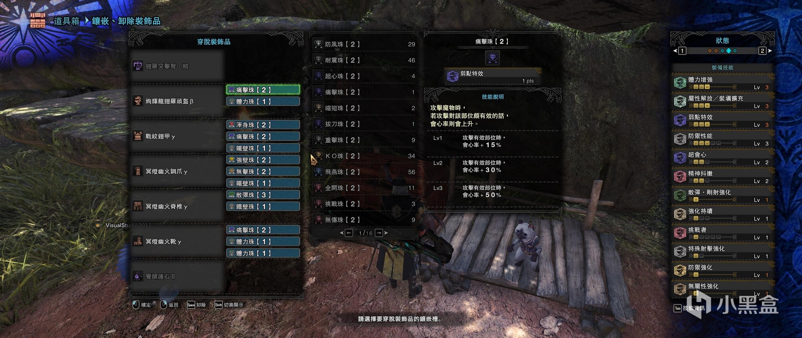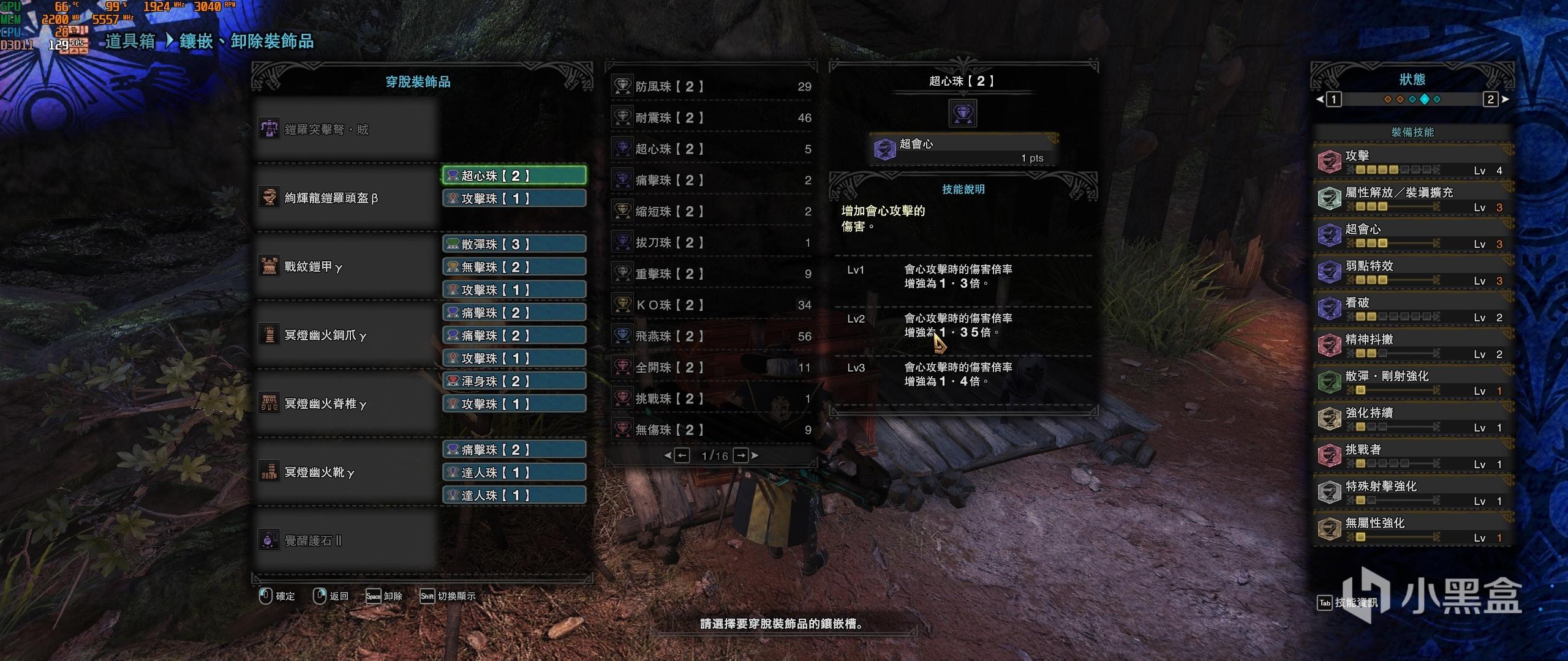 当前版本的配装其实已经到头了,现在的重弩配装基本就是追求高会心,又因为贼弩的特殊性需要散弹强化和无属性强化这两个必备技能,所以配装思路很窄而且配装选择很困难。目前属性解放、弹药节约和体力3基本是互相冲突的,想要做到三者兼顾必定会导致输出降低或者会心下降。细心的盒友可能会发现我上面的配装并没有防御性能5,其实也是类似的原因,出这类技能做出的牺牲太大了,而且防御性能3和防御性能5之间差距并不大,所以干脆不配了。
