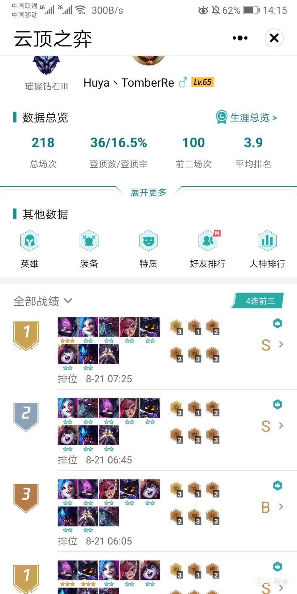 最近的战绩,这是郊区测试号,专门测试攻略的,用文中的思路一路前四上分,从之前测试套路乱打的黄金四一路到钻三~