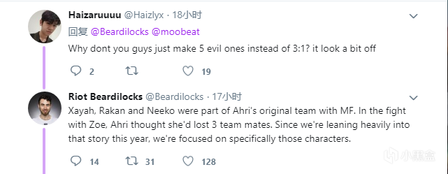 今日凌晨,在星之守护者系列皮肤迎来了新成员:佐伊、洛、霞和妮蔻后,有人不理解为什么霞与洛的皮肤与星之守护者之前皮肤的画风不同,于是拳头设计师Beardilocks在推特上回复了关于星之守护者系列皮肤的背景故事。