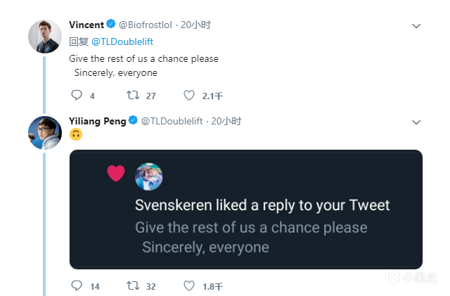 大师兄笑而不语,指尖轻点,上传了Svenskeren点赞了此留言的截图(Svenskeren所在的C9战队不久前在夏季决赛上败给了TL战队)