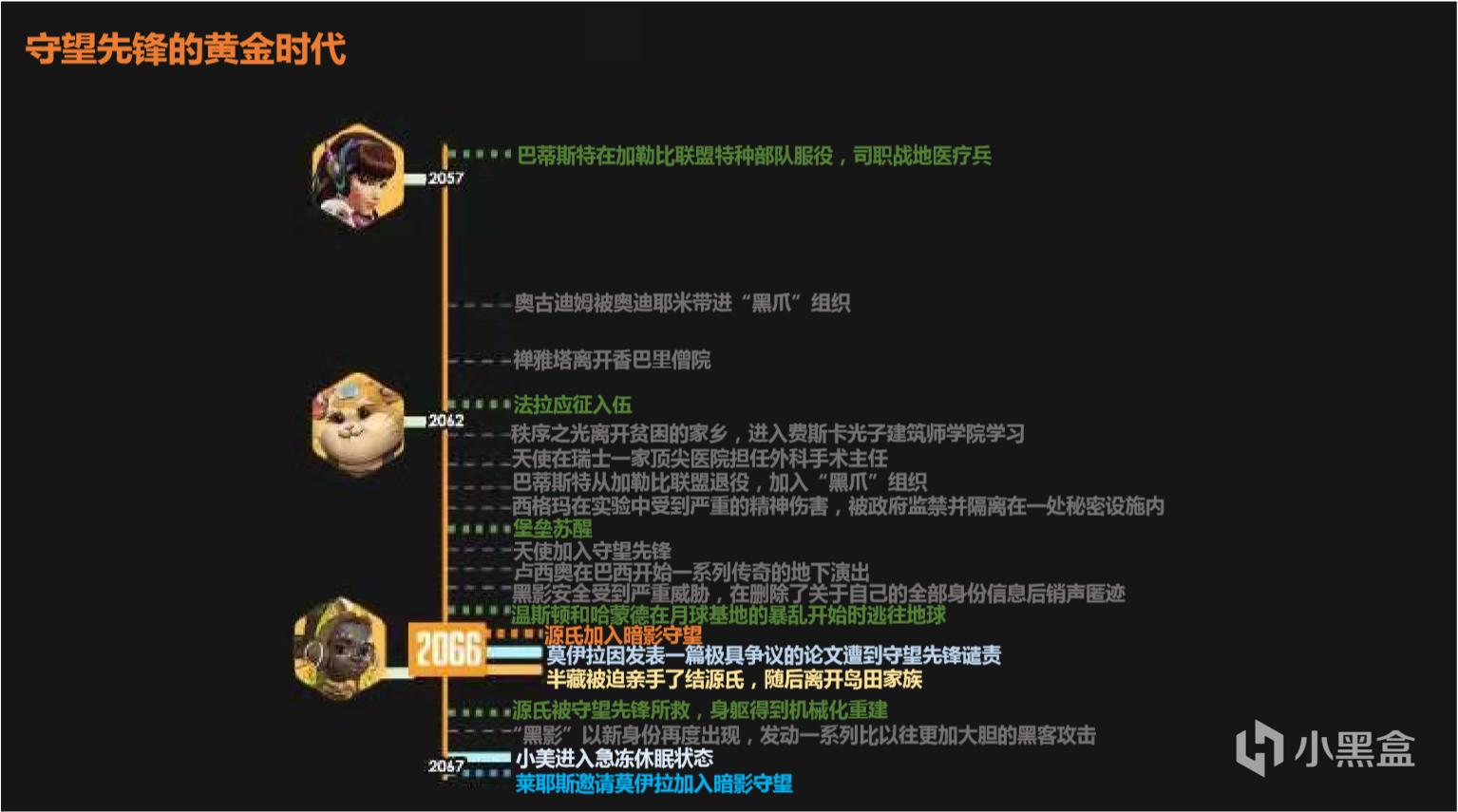 A:我只采用了一张“主”照片来影响时间线(的整体印象):安娜英雄故事里年轻的法拉和守望先锋成员(包括天使)的合影。我认为这是暴雪在整条时间轴上发布的最具有历史意义的形象,安娜的英雄故事里提到这张照片拍摄于20年前,难以置信地符合暴雪时间轴上的人物形象——如果你忽略掉角色外貌(2333)。MichaelChu曾经确认过一些艺术设定里有些年长角色年轻时的容貌有出现错误(来源:https://us.battle.net/forums/en/overwatch/topic/20744905067?page=5#post-84)总之你可以自行决定是否要在守望先锋的故事中带入暴雪出品的具体形象。
