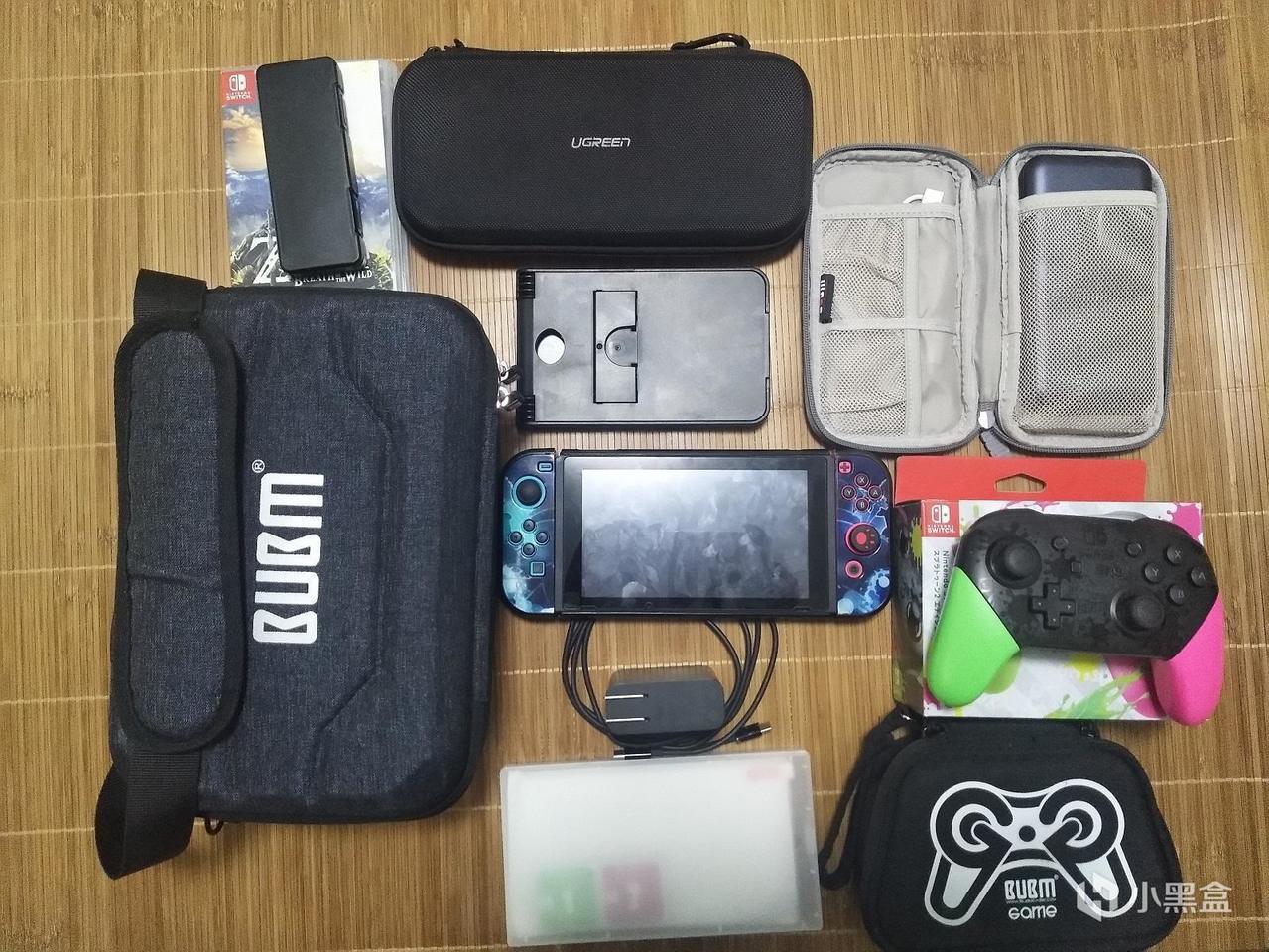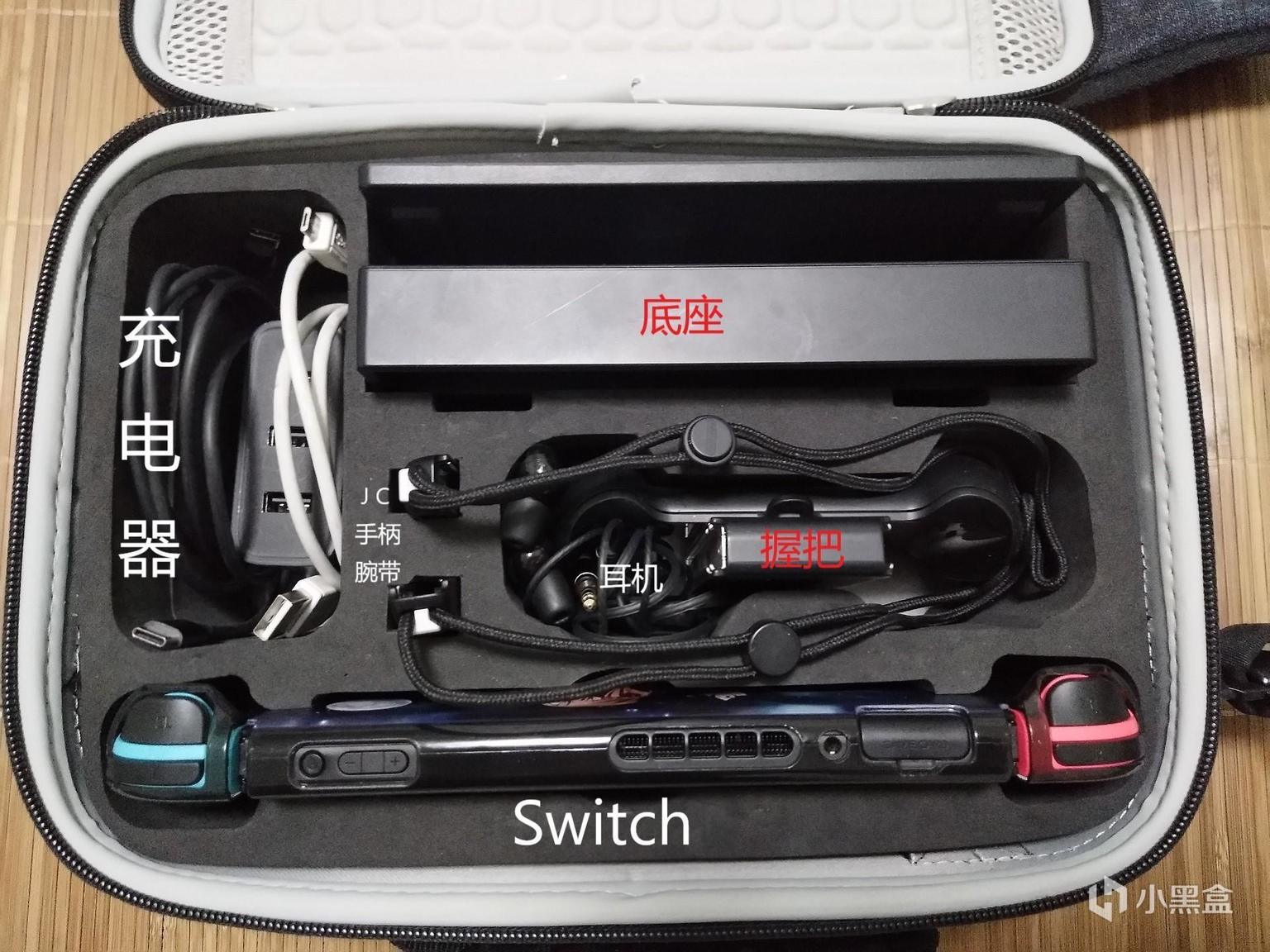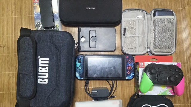Switch的收纳包种类可谓是五花八门,不同类型对应不同需求。我入手了两款不同类型的收纳包,一种是只能装下Switch的收纳包,另一种则是可以把全套Switch组件一次性带走。实际收纳效果如图