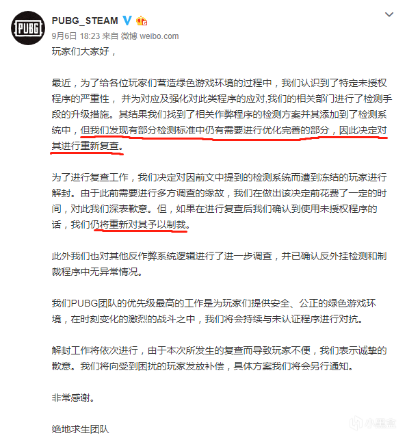 PUBG是否存在过误封?答案是有的,我在很早之前发布如何申诉教程的文章时,就说过PUBG存在误封,而且这也是官方发布公告表示过的,官方在公告中明确表示“关于误封”几个字。