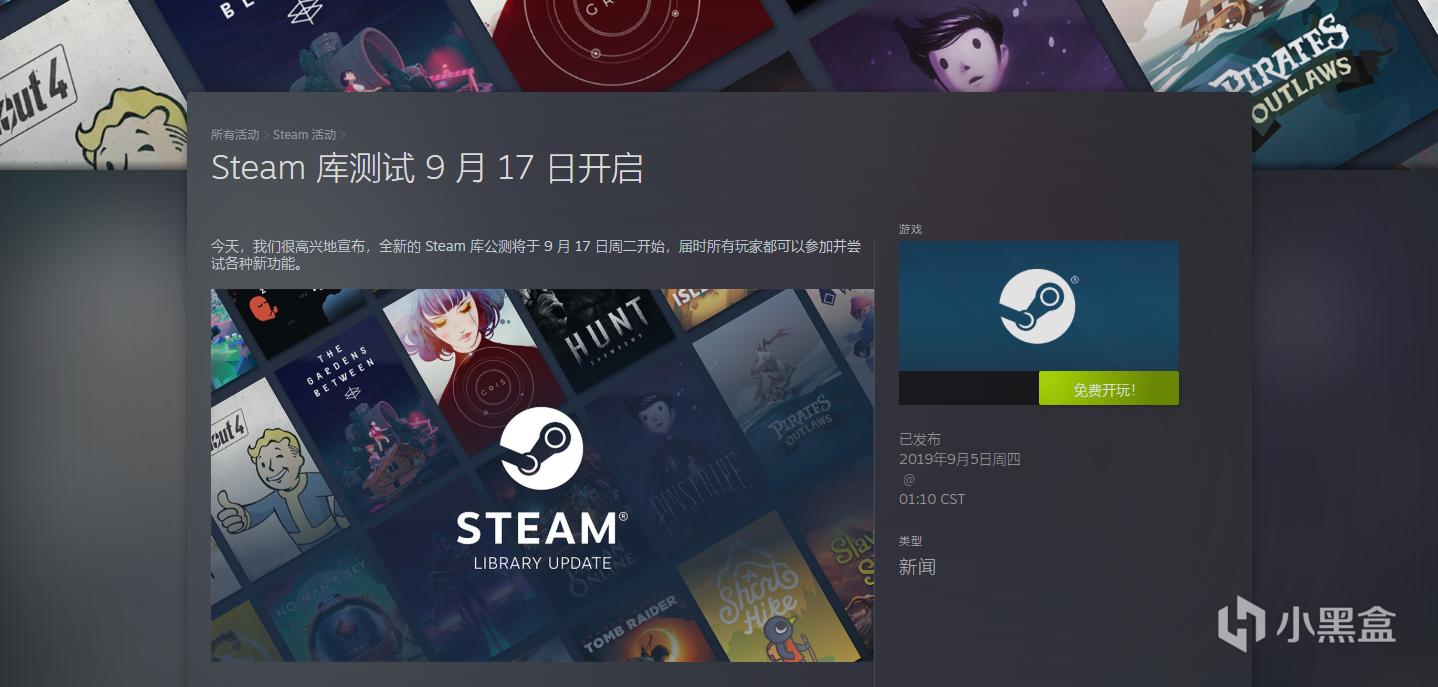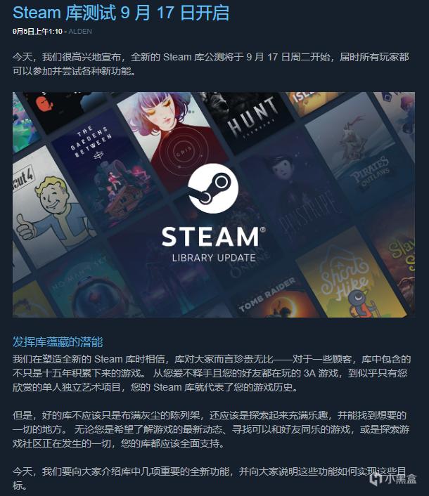 虽然距离Steam库的更新还有一周的时间,但是更新信息这一部分的UI已经做出了改变,虽然文字依旧设计成了白色(标题的颜色也从蓝色变为了白色),但是文字下的背景却变得更加的美观和现代化。