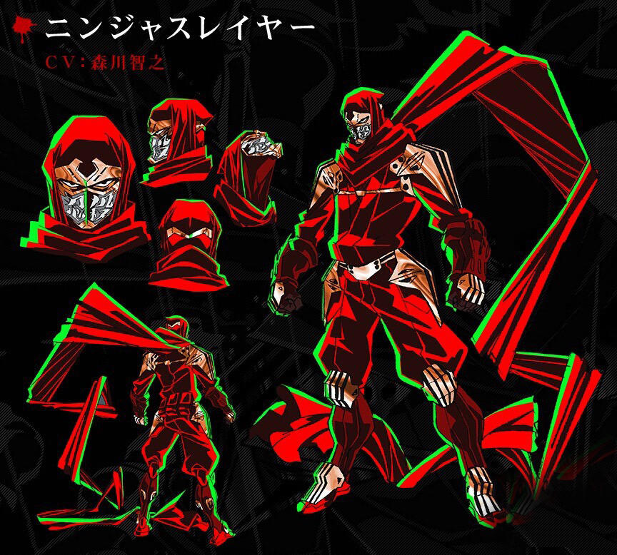 异能、战斗题材的作品早已是雨宫的拿手好戏,对于《忍杀》的风格把控自然不在话下,角色设计则由今石洋之为首加上saitom、芳垣祐介等原画师、插画师在内的一众人负责。