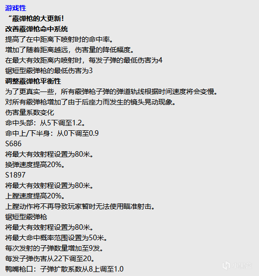 但是却将伤害系数降低了,这个操作是想让我们养成用喷子的良好习惯?难道是想把喷子从落地枪改善成中近距离的一锤定音枪?可能这一切只有霰弹枪爱好者才能理解吧。