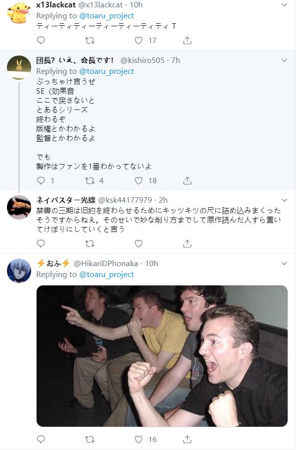 作为狂热轻小说厨的岸田教団和THE 明星ロケッツ两人也表示当知道自己参与『とある科学の超電磁砲T』的时候,整个人生都变得充满活力,并表示会尽可能的将作品打造的更加完美。