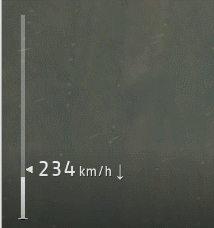 我们先来看一下当下落距离强制开伞高度不足一半的时候,我们采用正常加速伞的方式,把头从平飞转为垂直往下落,这种情况即便下落速度达到了233km/h,加速伞也只能开到90多的速度,并不能达到开满加速伞的状态(离开飞机就直接垂直下落就是开满加速伞的情况):