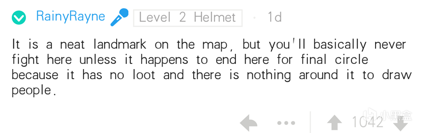 “这是地图上一个空荡荡的地标地点,但你基本上不会在这里进行战斗,除非是决赛圈缩到这了。因为这里没有物资,周围也没什么吸引人的东西。”