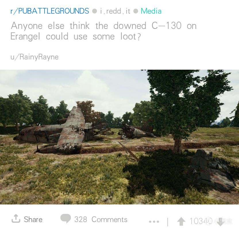 海岛图(Erangel)北岛上有一架坠毁的C130运输机残骸。尽管它在森林草地里是一处相对显眼的地标,但官方一直没有为其机舱内加入武器装备等物。恰恰是这里没有任何补给这一点,引发了国外网友的广泛讨论。