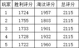 游戏总评分的计算公式已经进行了多轮调整,但是可以确定的是,无论现在总评分计算公式是什么样的,胜利评分(即之前的生存评分)的加权系数要远高于淘汰评分(战斗评分)。