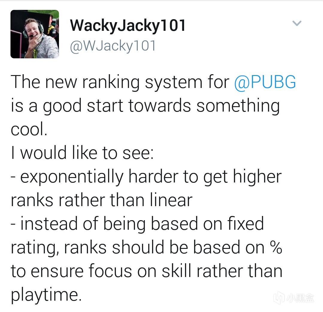 知名的PUBG内容产出者:WackyJacky101对于段位系统给出了自己的看法: