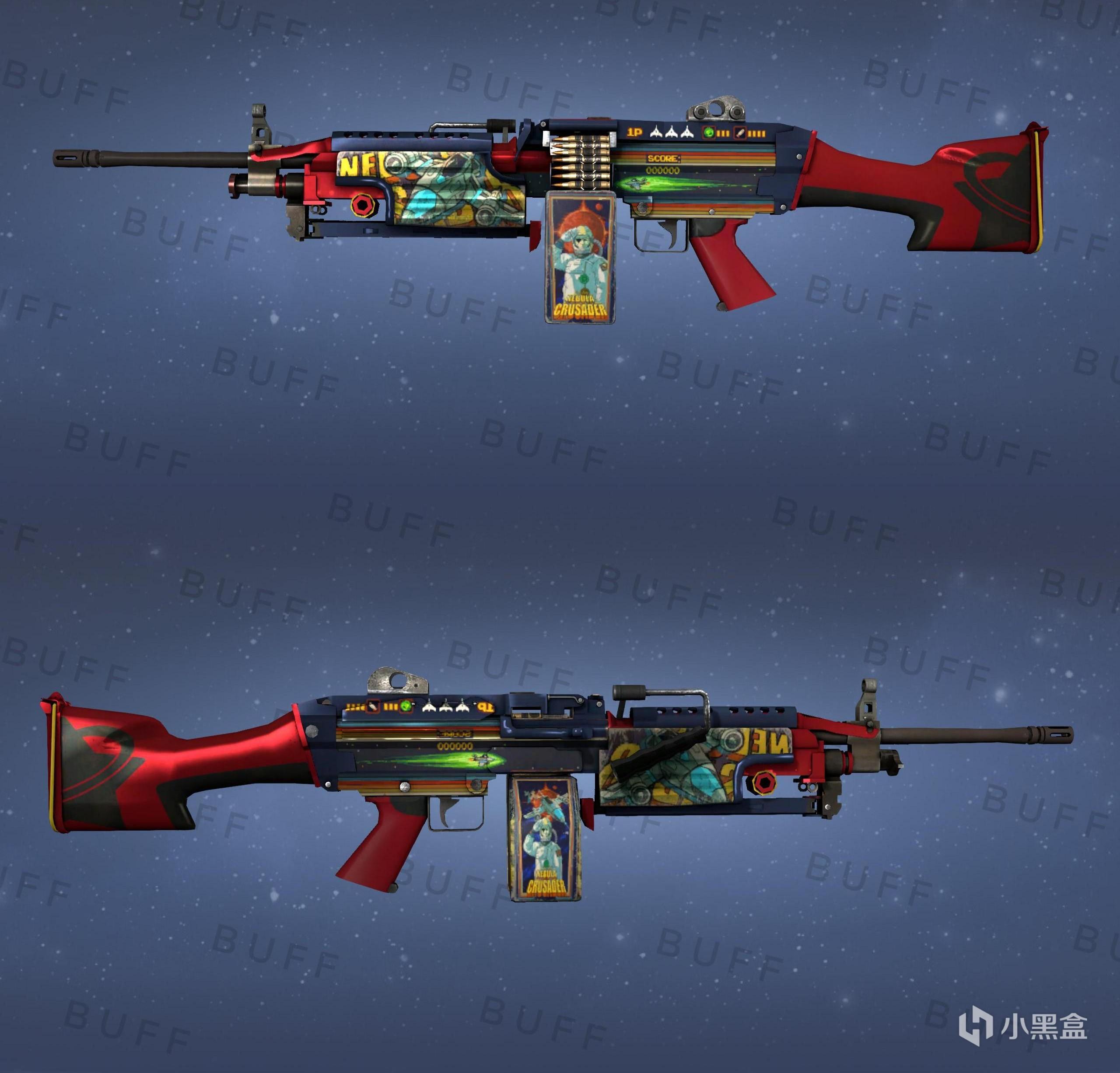 每次都在犹豫推不推荐M249的皮肤,因为真的太少人用了,但转念一想,把冷门枪械的皮肤推荐给大家也是这个系列的任务所在。亮红色有种赤红新星的感觉,图案是太空风格,细节十分丰富,质量极高的一款皮肤。