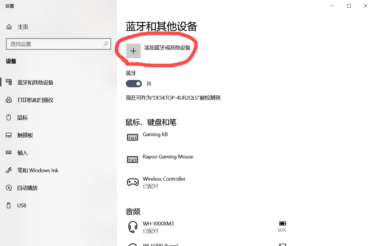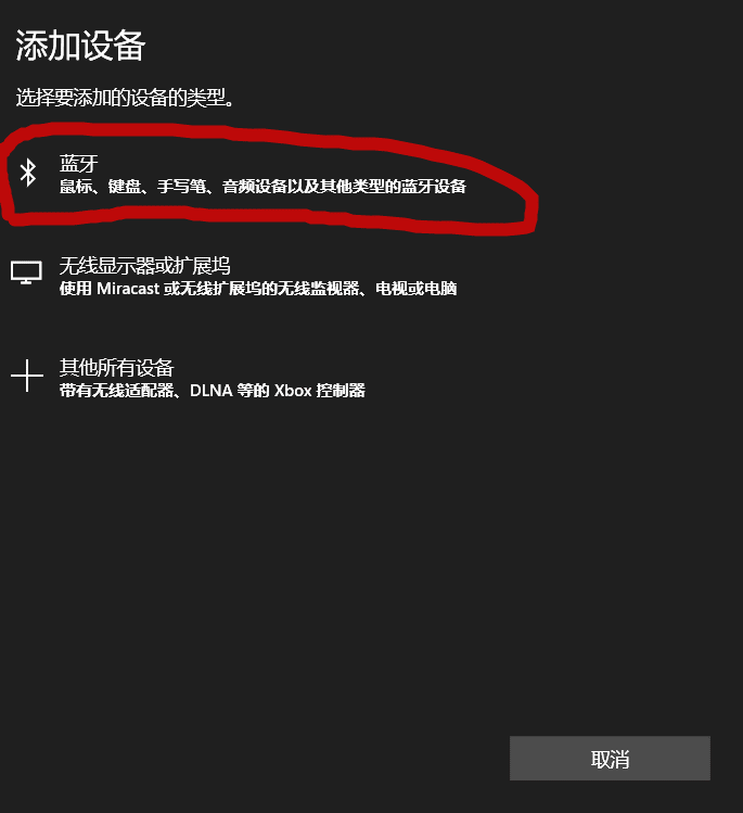 可以看到指示灯快速闪烁,此时打开电脑蓝牙—>添加设备—>选择第一个,如下两图所示。