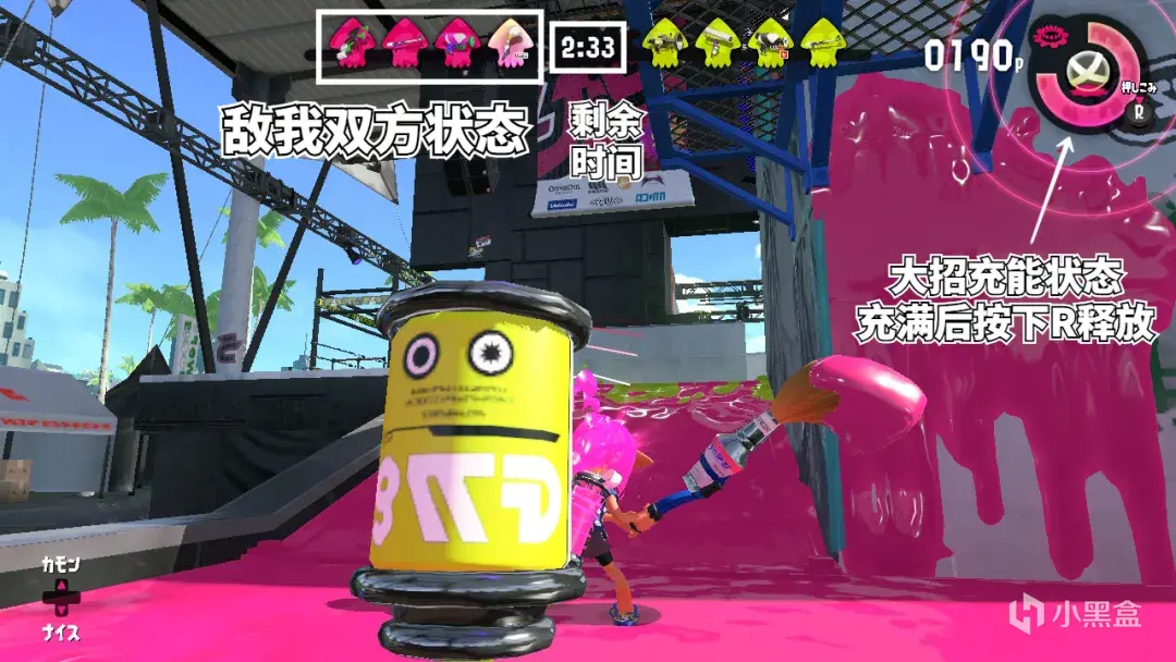 我们的武器会在场景中留下墨水,在涂地模式中,哪边在时间结束时涂鸦的面积更大,哪边就会获胜。所以在这个模式里,即便打不中人也没有关系,大胆涂鸦,只要敢开枪就有作用。不过打人很爽!