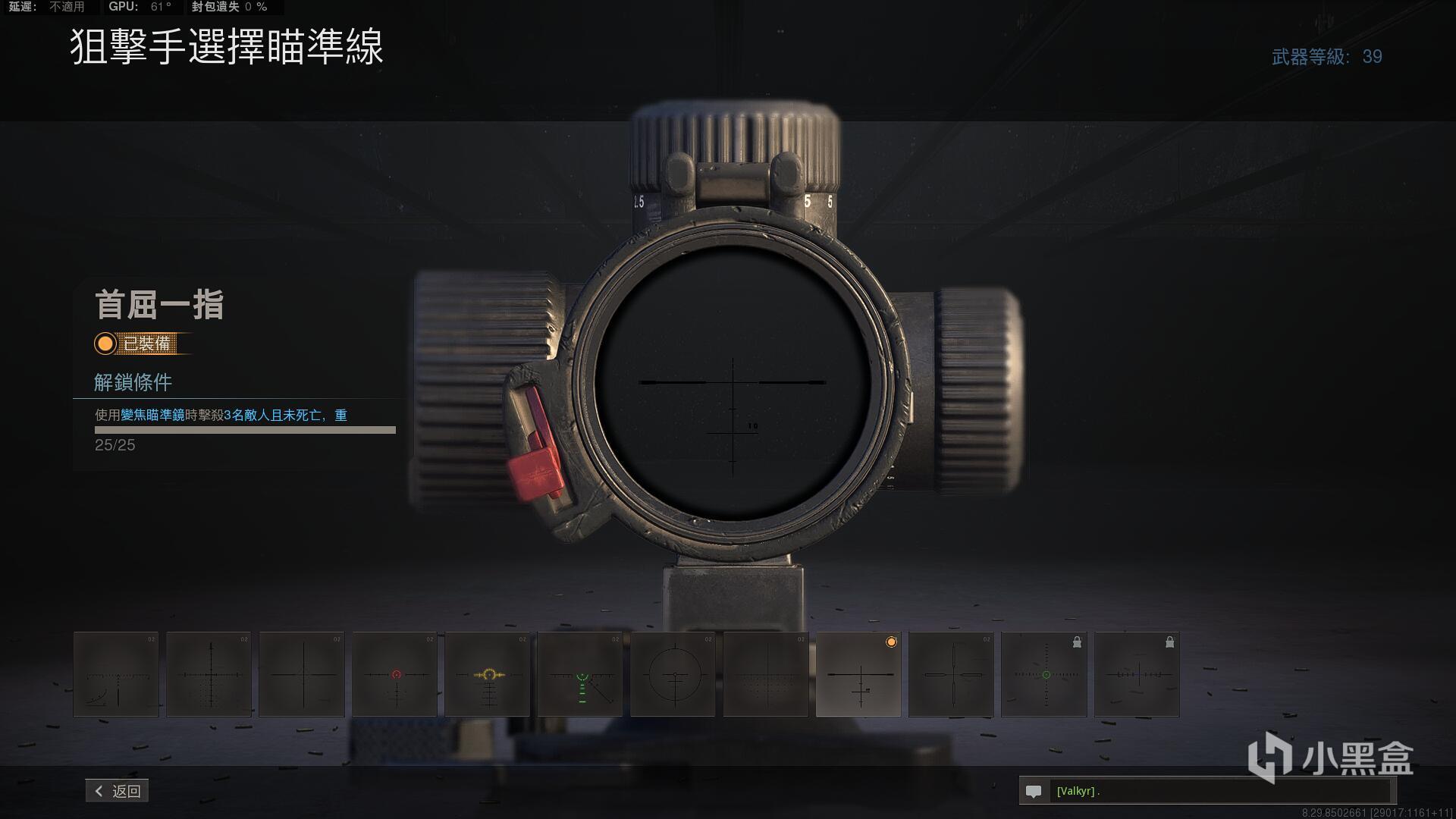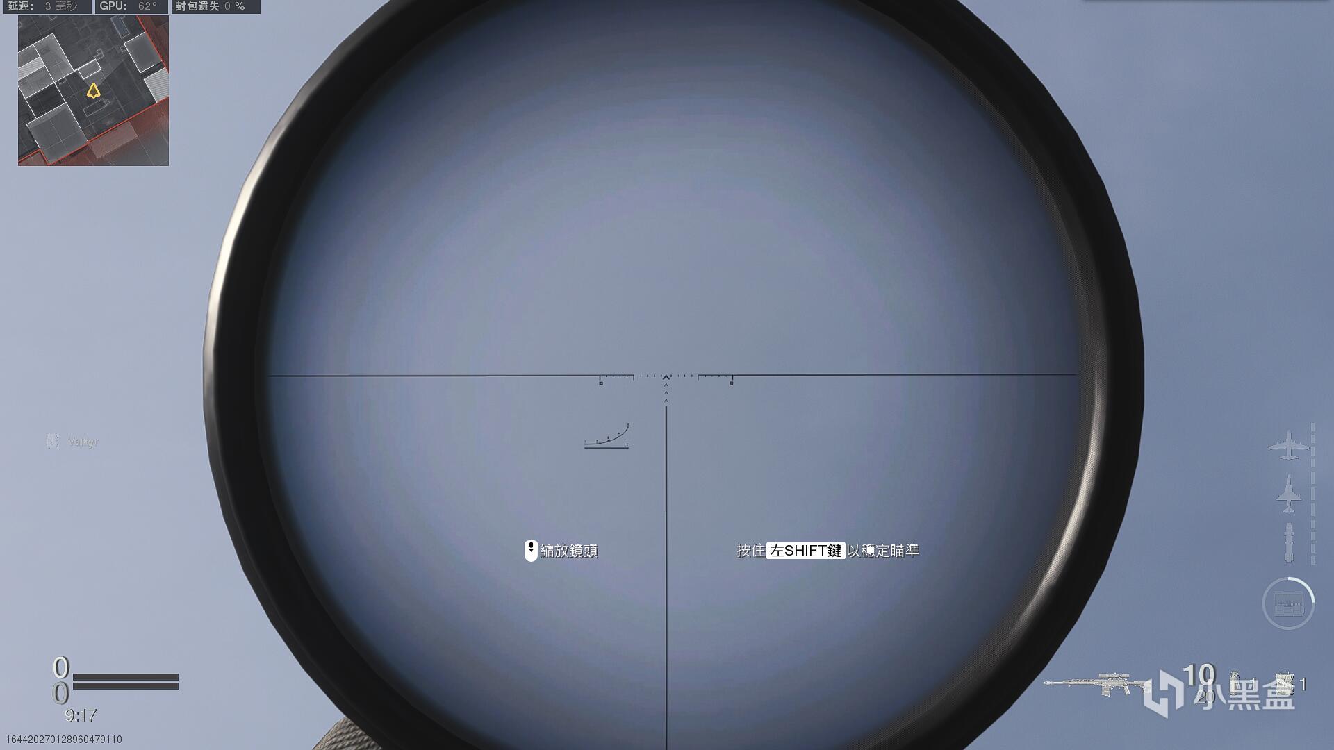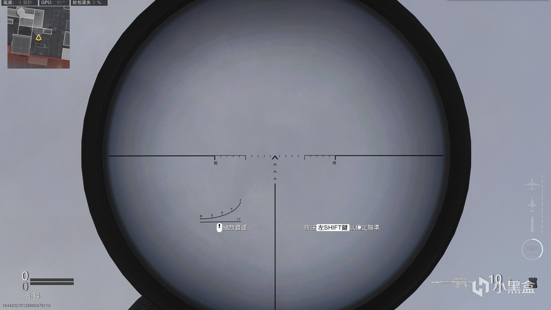我也没全部解锁,因为用不到所以也没去刷最后两个。个人认为,最好用的是左9右4这个,“首屈一指”瞄准线,局内开镜效果如下: