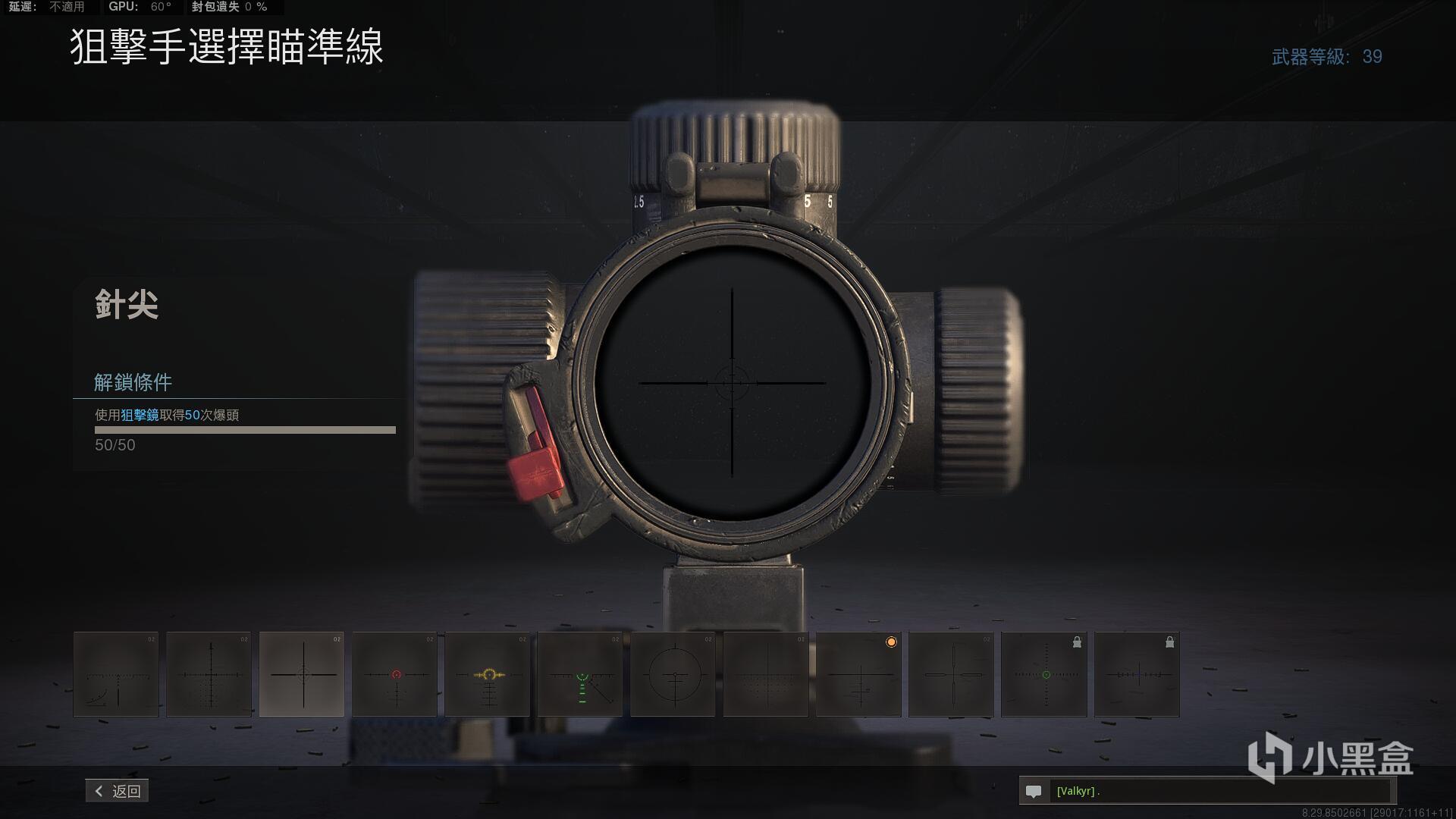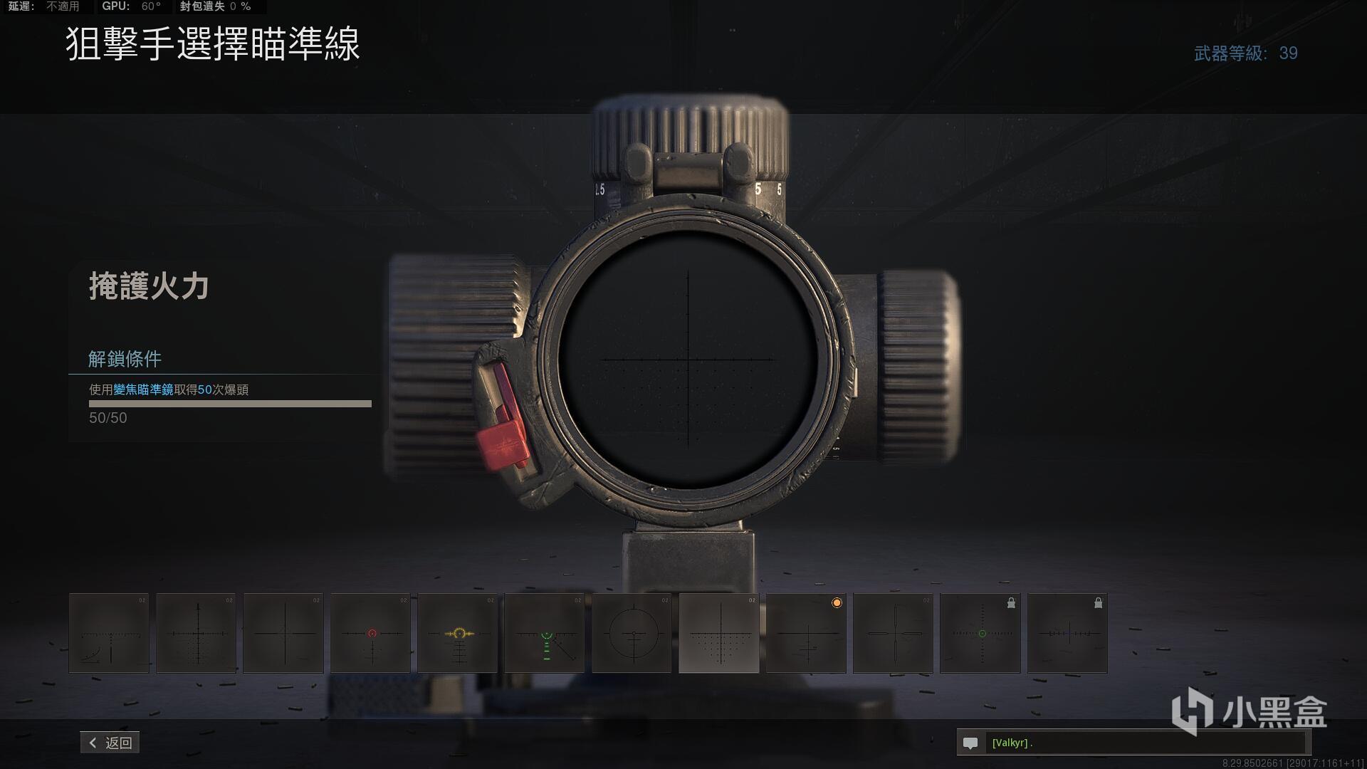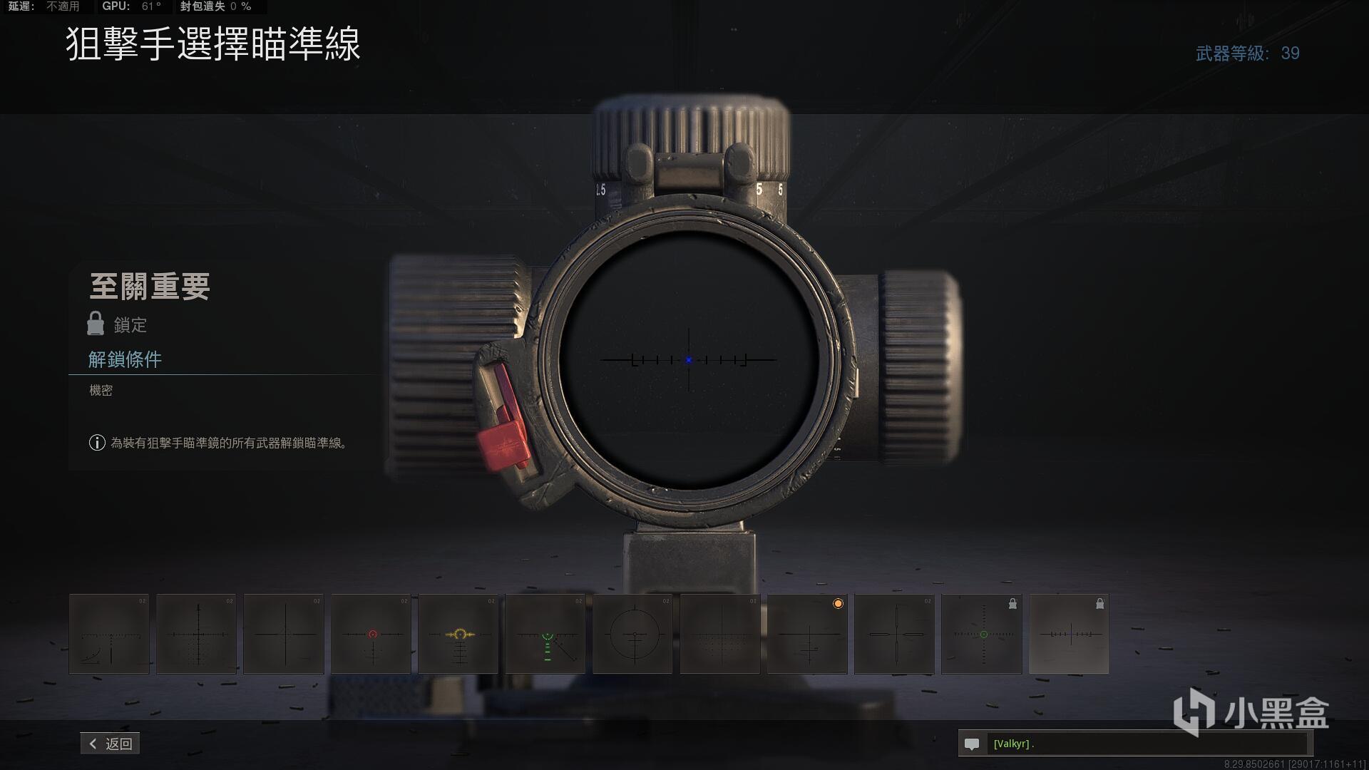 我也没全部解锁,因为用不到所以也没去刷最后两个。个人认为,最好用的是左9右4这个,“首屈一指”瞄准线,局内开镜效果如下: