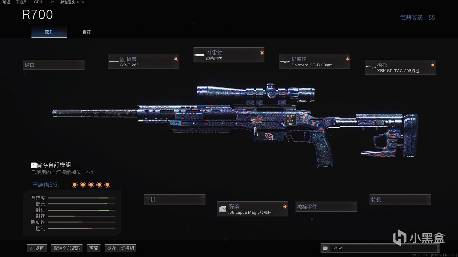 枪托配件可以换成Lapua弹药,Lapua在战区相当于加点弹速的配件意义也不是太大。地面战争的话,和98k差不多的地位,Lapua出了第一段射程就不威猛了。弹速869.5m/s。