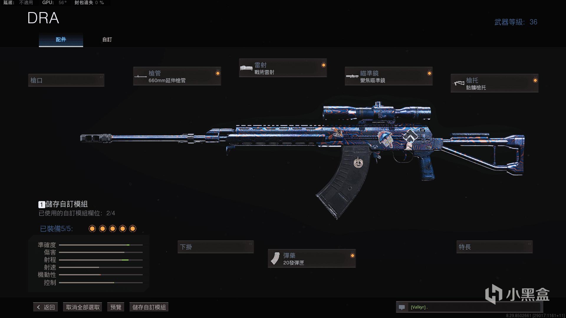 刚才才说过稳定性偏差,拉满射程的情况下拉满稳定性,很常规的配法,变焦镜可以换成大弹匣/集中注意力。