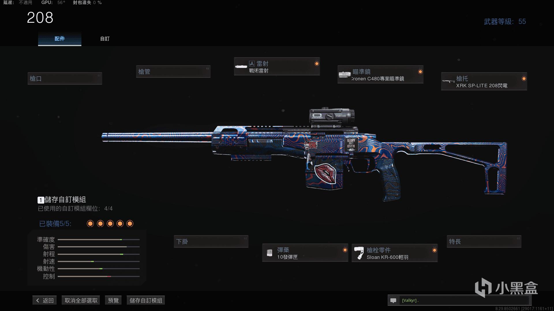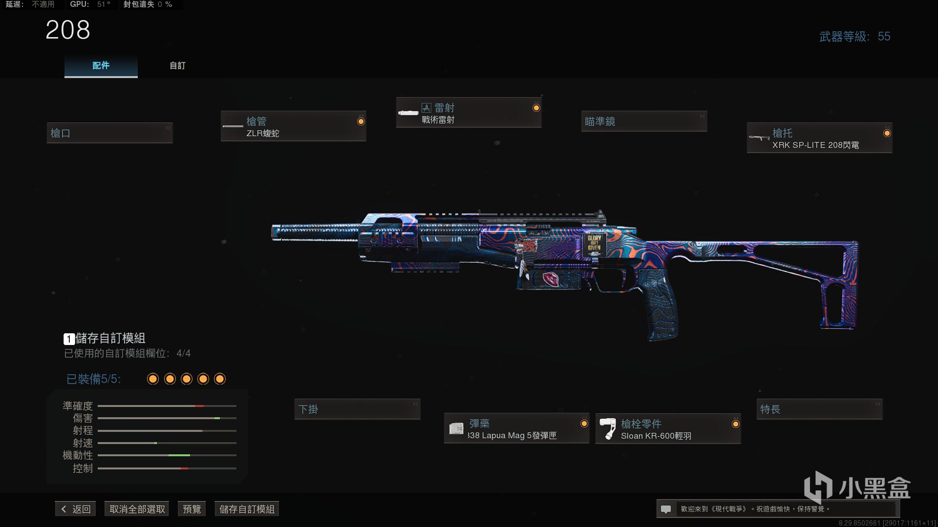 SP-R 208最适合的打法就是本体冲锋狙。虽然基础射速和98k相当,都为44 RPM,因有枪栓配件的存在,可以增加至51.8 RPM。