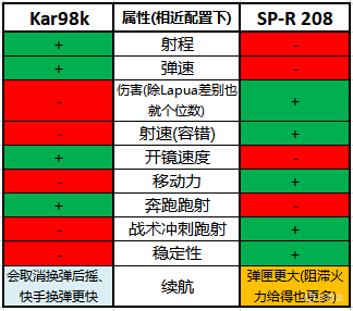 其实二者好几项差距都不明显,差距大的可能就弹速了,建议战区选98k,本体冲锋狙用SP-R 208(阻滞火力比什么Lapua强多了)。
