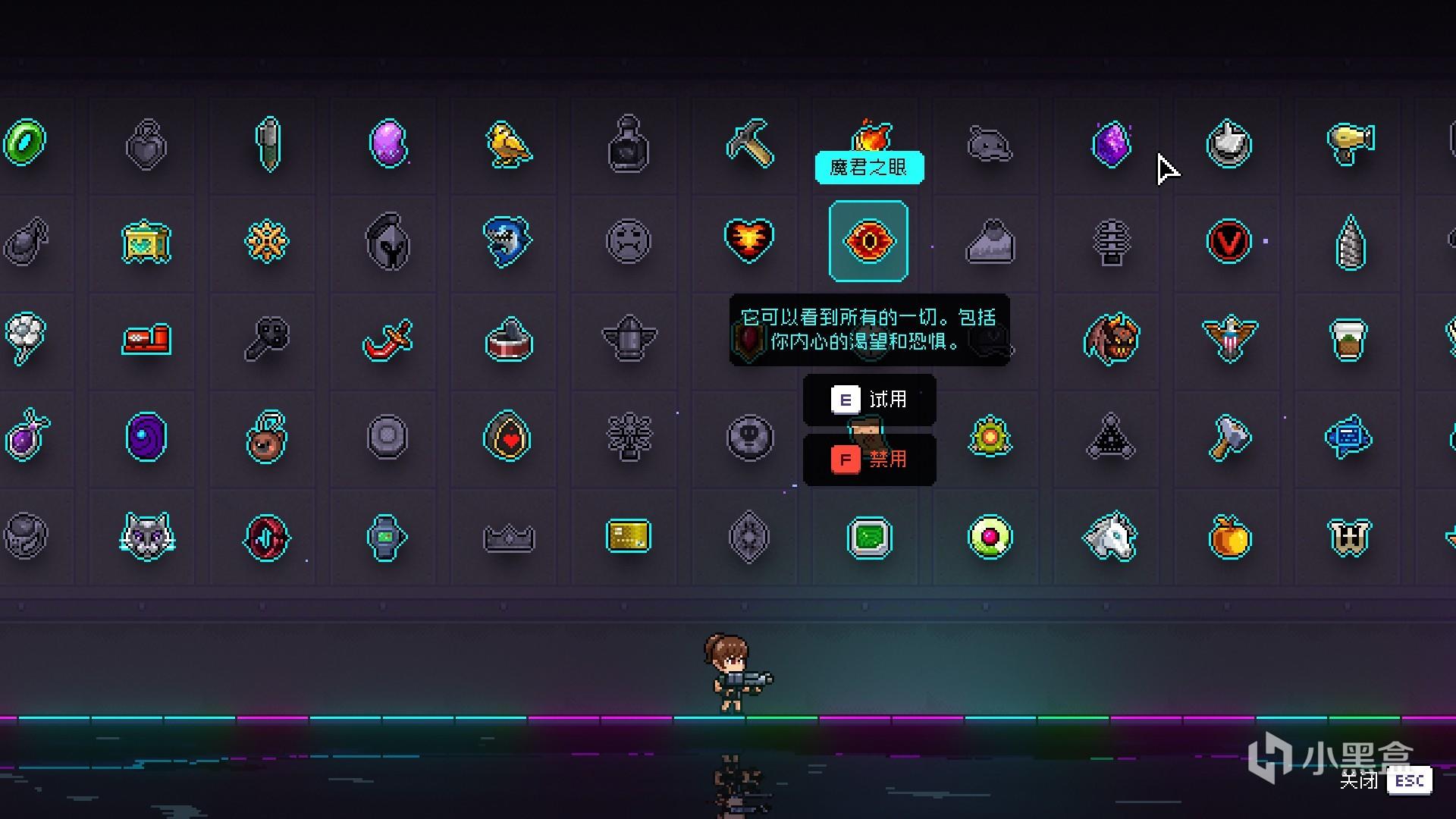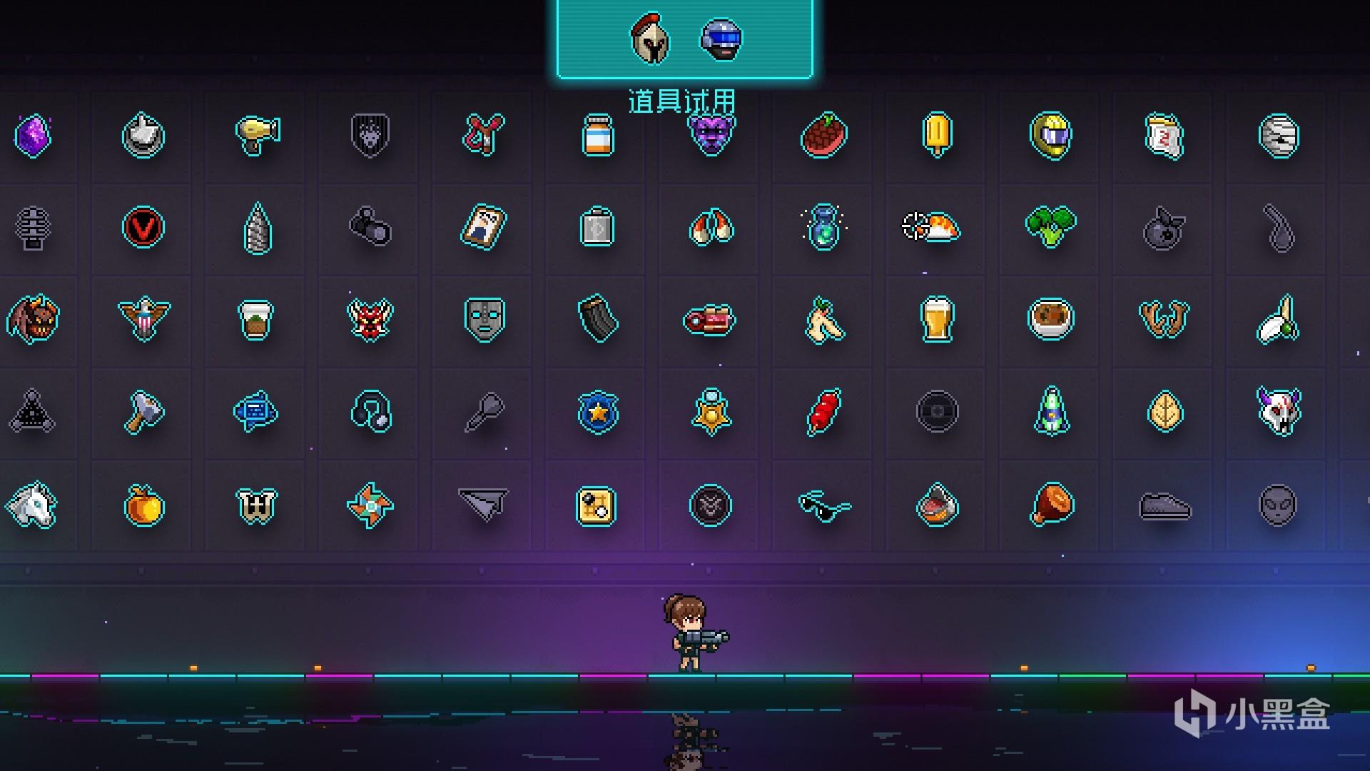 非常多。同样可以在房间里面试用。当你穿上道具的时候,都会在服饰上面有很明显的体现。这点就跟《以撒的结合》十分相似。不同的道具就会有不同的外观。同时跟《以撒的结合》一样,道具的效果会体现在武器上面。武器升级,威力提升,子弹就会变大,激光就会变粗,非常直观。
