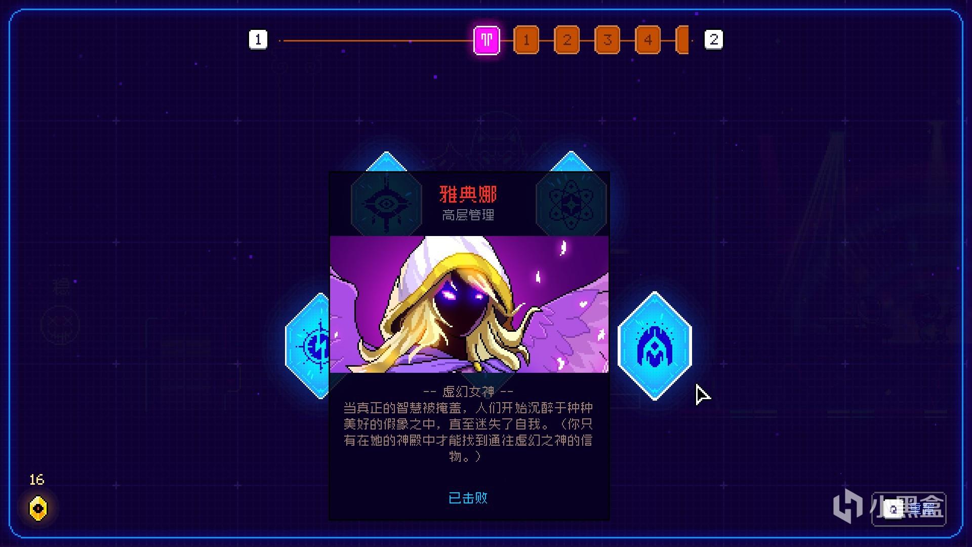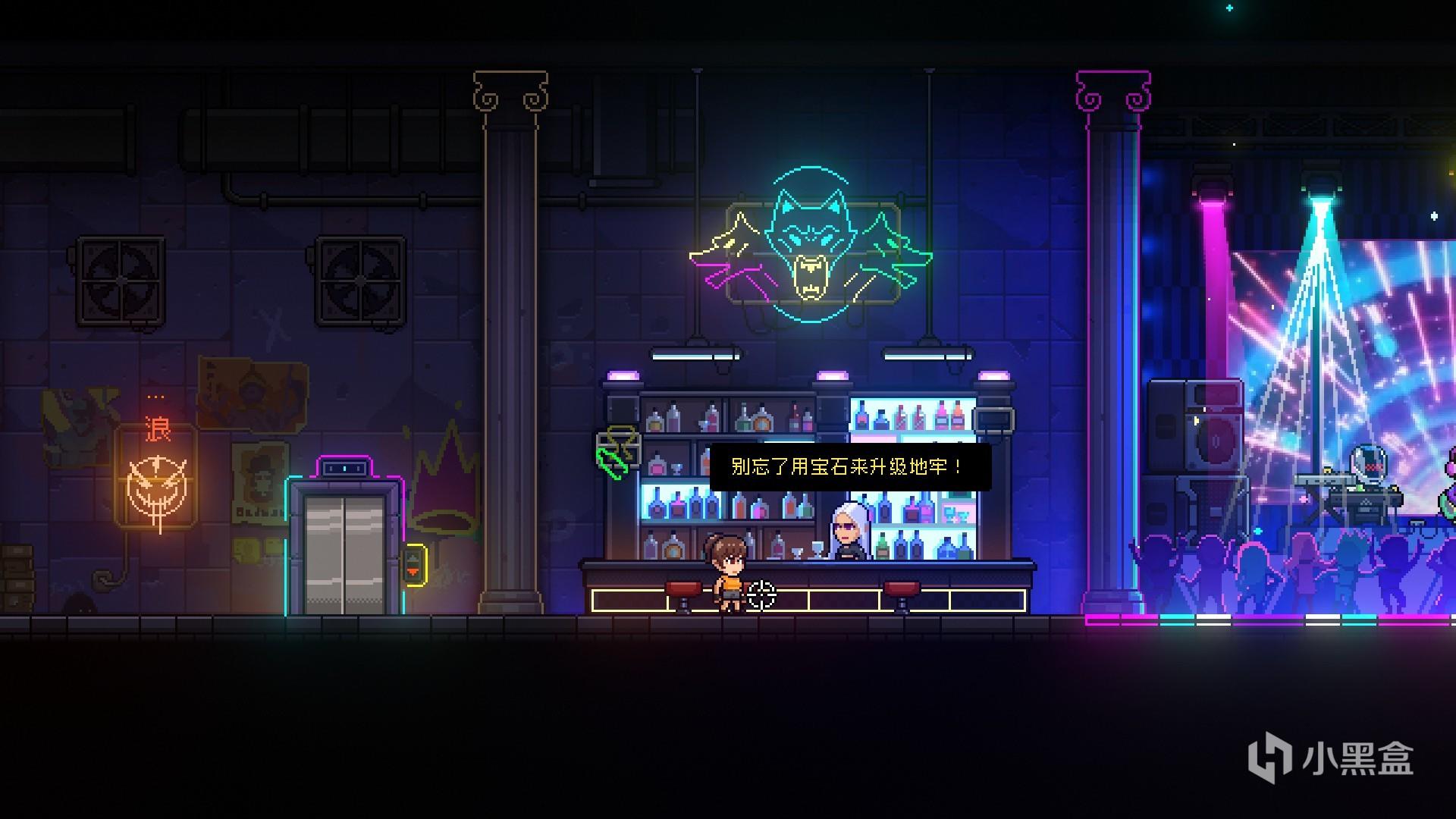 这个是让我十分惊艳的地方。我之前接触的肉鸽游戏,这些加点都是提升主角的能力。像《枪火重生》,像《黑帝斯》这些,都是让主角变强,让你更好去游玩。但是《霓虹深渊》不一样,除了解锁人物和几个能够提升一点能力的加点项目,其余全部是丰富游戏性的。更奇葩的房间,更奇怪的盒子,更有趣的选择,更刺激的挑战,更无理的商人,这些不是在让你的游戏更简单,而是让游戏有更多的未知,更多的机遇,更多的挑战。越玩东西越多,很好!